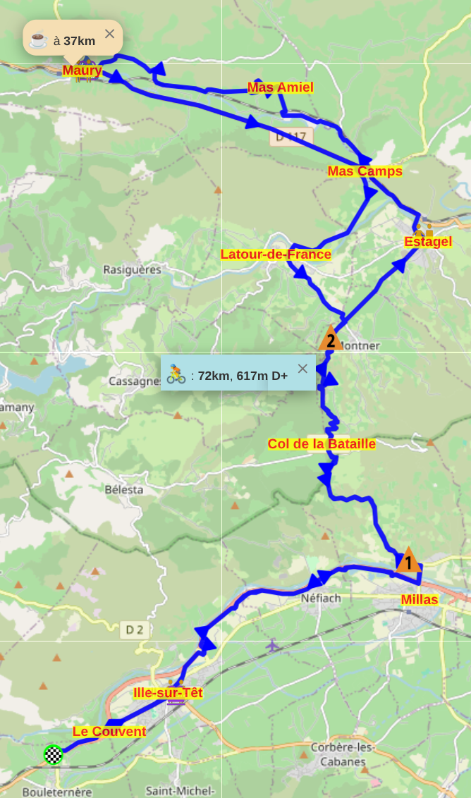 Tous les circuits sont susceptibles d'être déterminés ou modifiés en fonction de la météo ou de la forme des cyclos. Le rendez-vous de regroupement est à Prades. N'hésitez pas à engager une conversation sur la messagerie "Signal" groupe "ACPrades Club cyclo"
