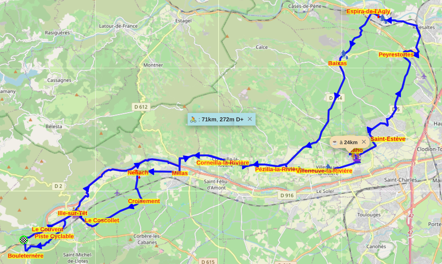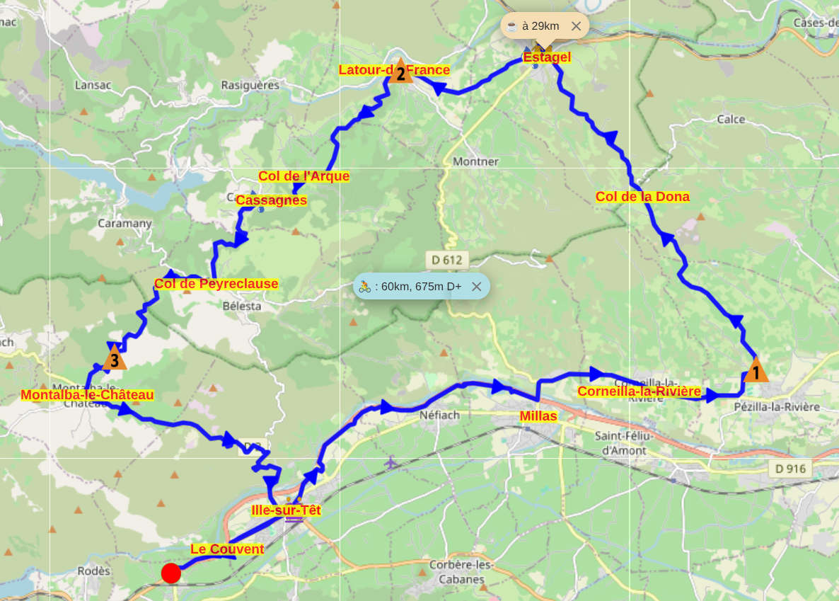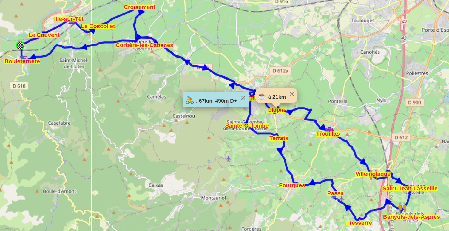 Parcours proposé pour le G1 modifié suite à l'annulation de la Pause Café CoDep à Brouilla :